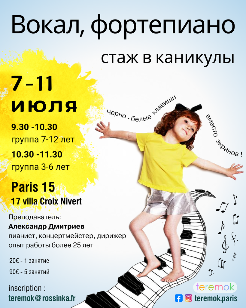 Для записи заполните форму внизу или отправьте нам мэйл: teremok@rossinka.fr.