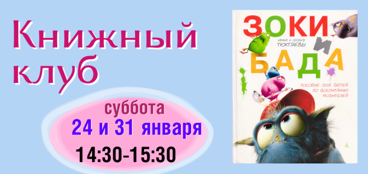 Приглашаем на очередные встречи Книжного клуба в субботу ребят от 6 лет (можно с 1 родителем) ! Время: в субботу 24 и 31 января в 14:30. Адрес: 17 villa Croix Nivert, 75015 Тарифы: Подробнее...