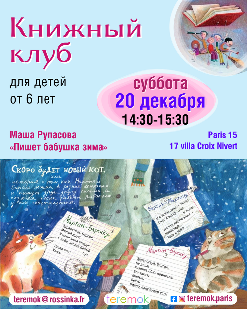 ✍ teremok@rossinka.fr — записывайтесь до 19 декабря по мейл или заполнив форму внизу и приходите !