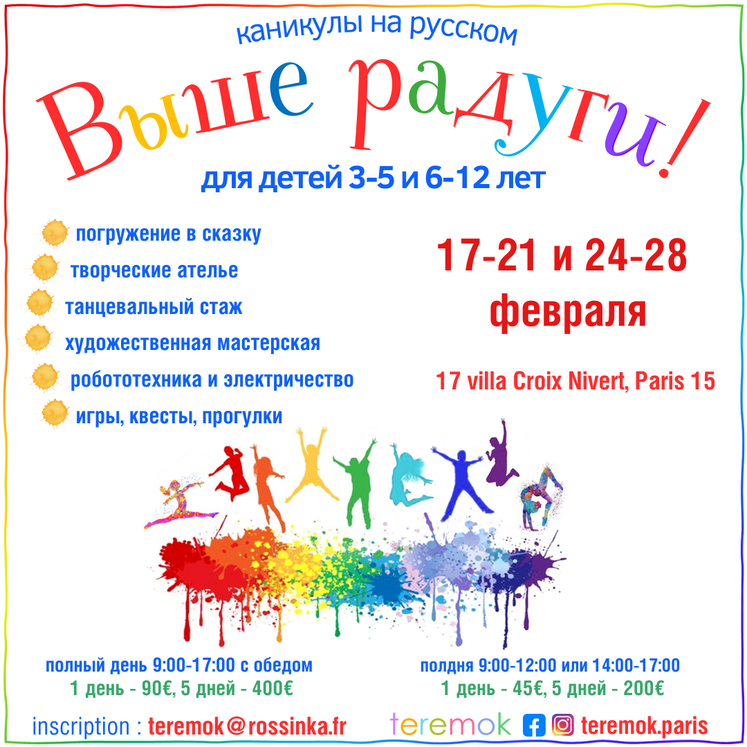 «Выше радуги !» — каникулы на русском — 17-21 и 24-28 февраля 2025