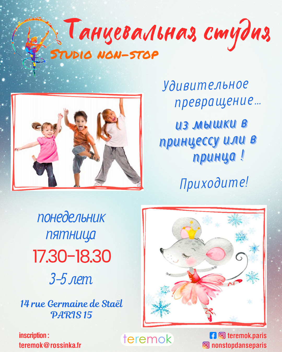 Для записи в студию заполните форму внизу или отправьте нам мэйл: nonstop@rossinka.fr.