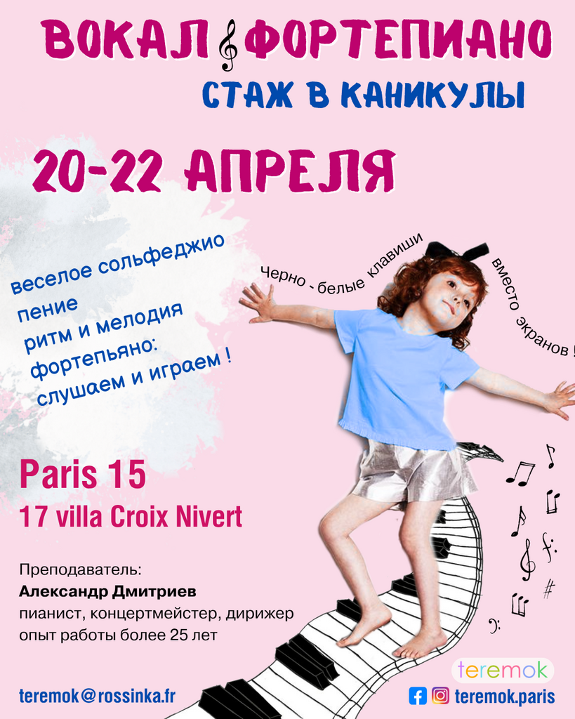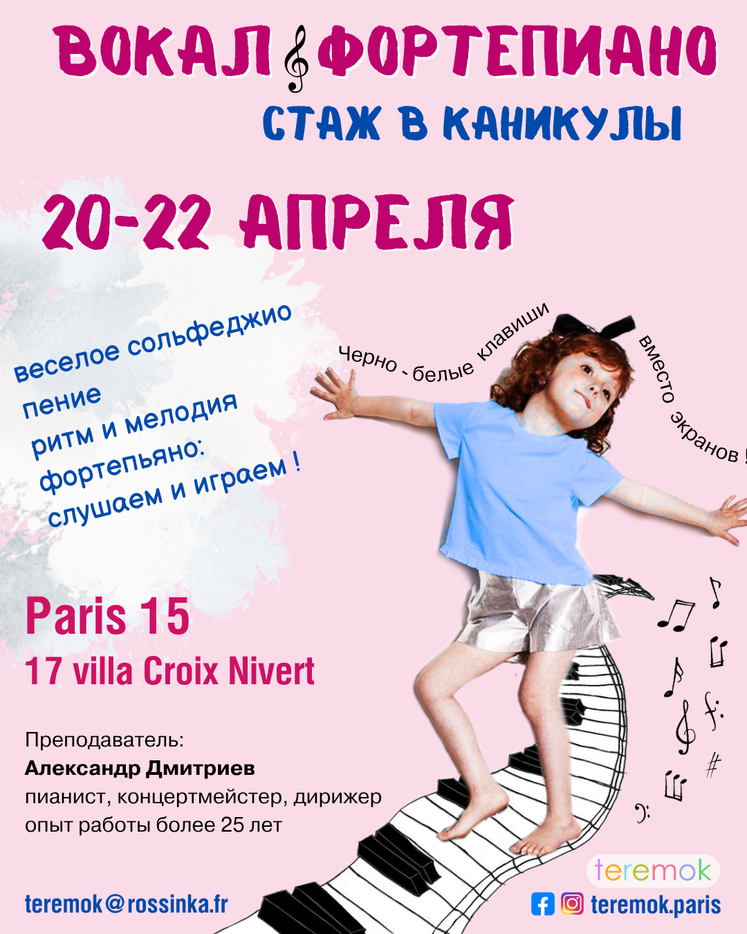 ✍ teremok@rossinka.fr — записывайтесь по мейл или заполнив форму внизу и приходите !