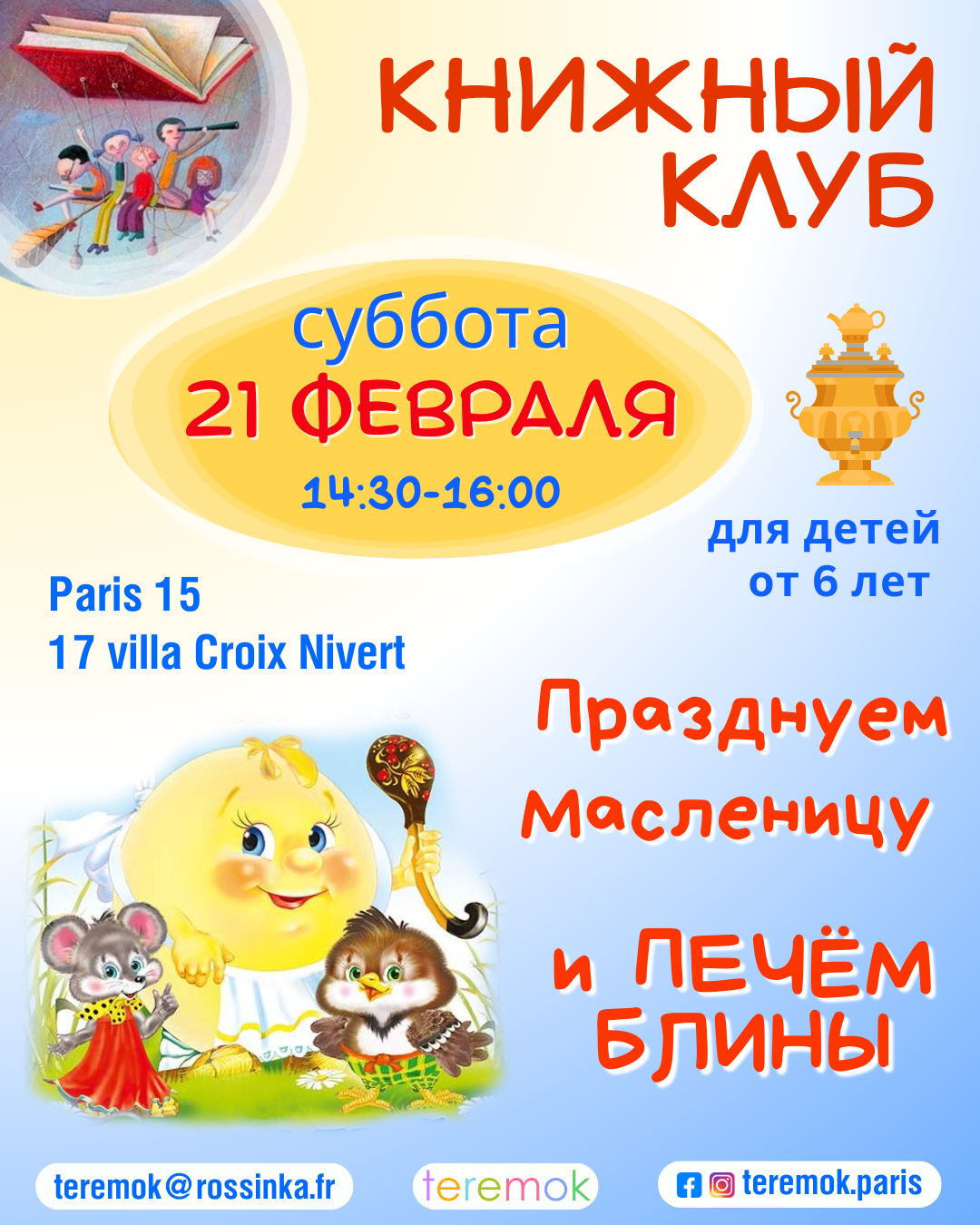 ✍ teremok@rossinka.fr — записывайтесь до 20 февраля соответственно по мейл или заполнив форму внизу и приходите !