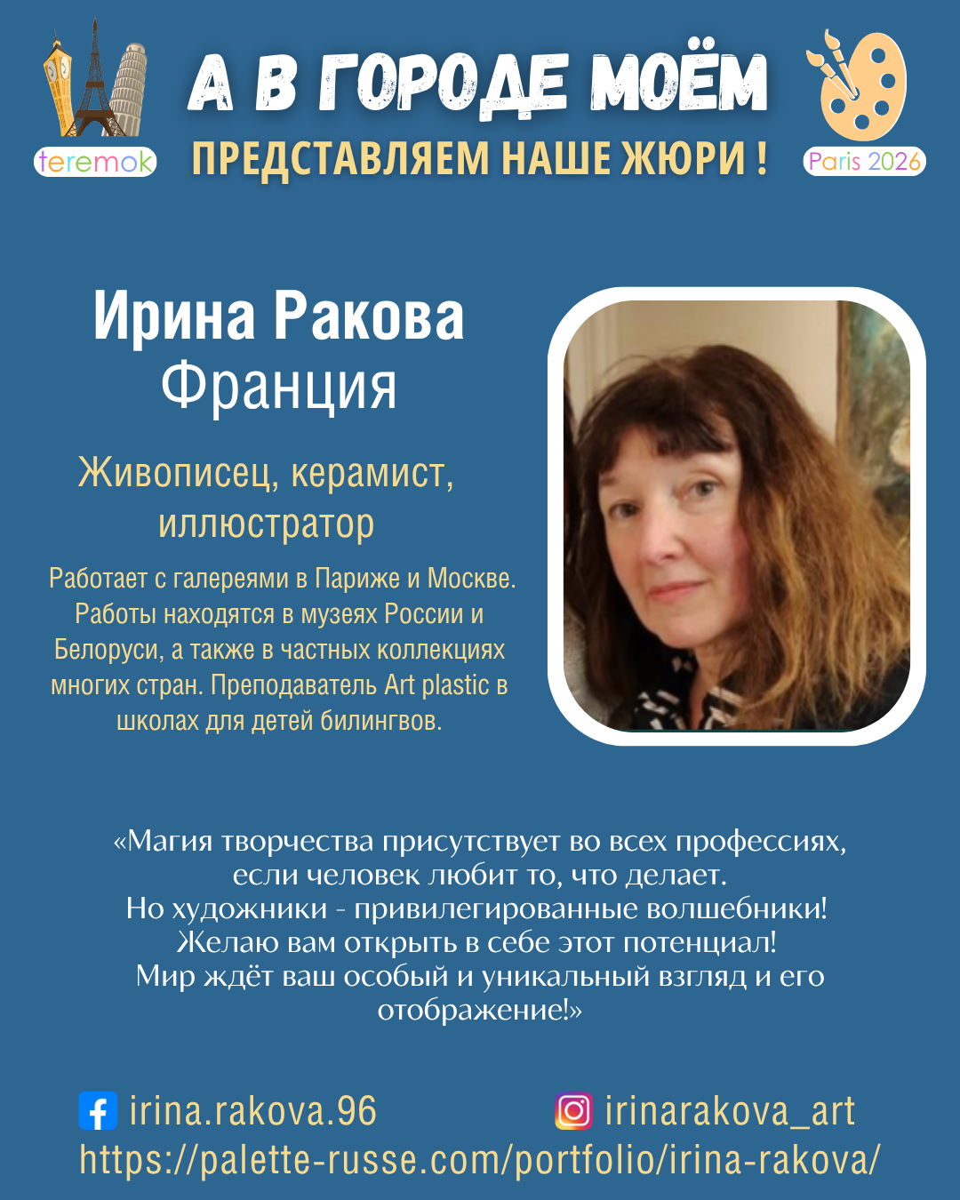 - Irina Rakova, peintre, France – www, FaceBook, Instagram