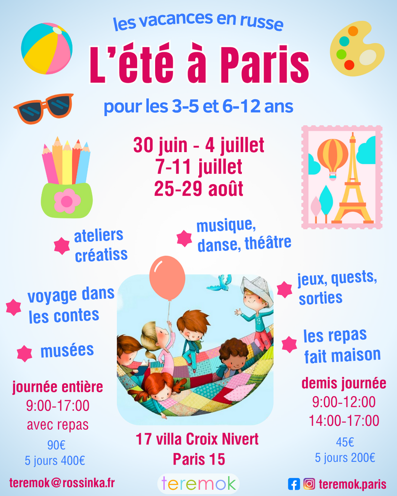 Лето в Париже — каникулы на русском для детей 3-5 и 6-12 лет — 30 июня — 4 июля, 7-11 июля и 25-29 августа 2025