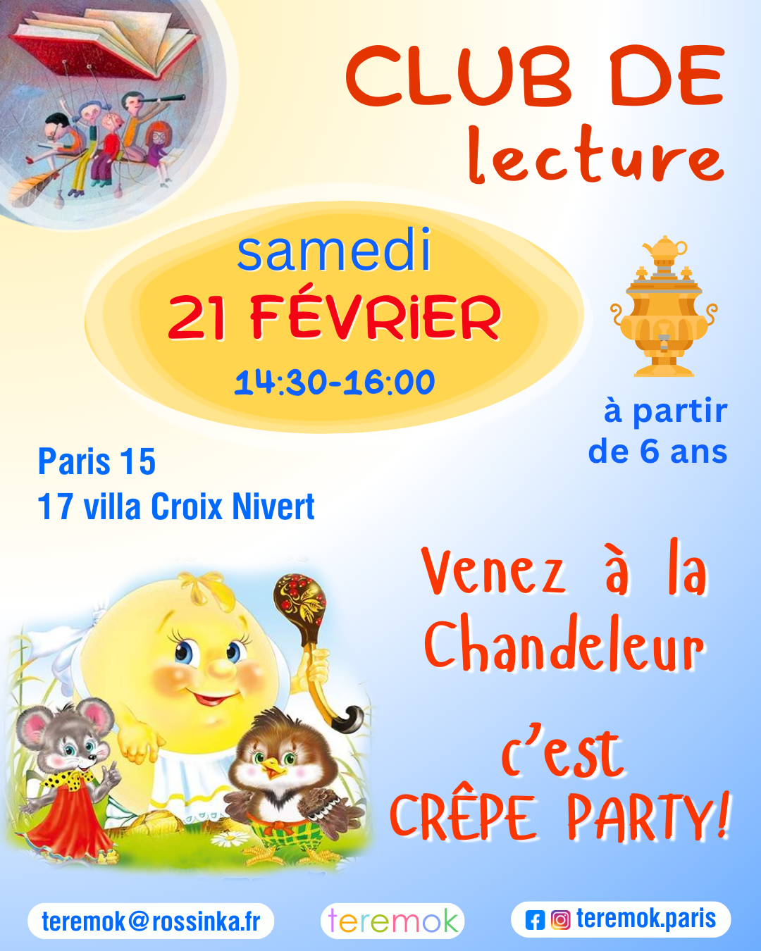 Venez à la Chandeleur – c’est Crêpe party au Club de Lecture le samedi à 14:30 – 21 février 2026
